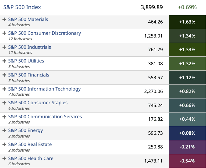 Monday’s Spotlight forecast a bullish start to the week, and after the initial opening decline, all major indices moved into the green.
