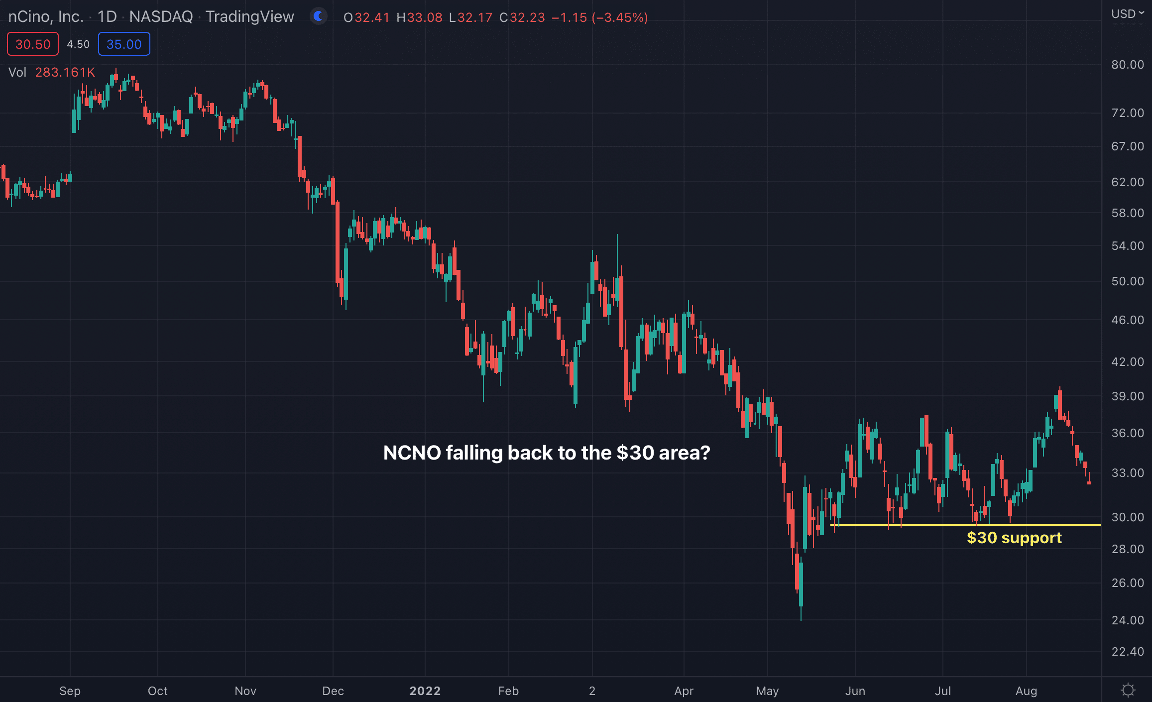 nCino, Inc. engages in the development of a cloud-based operating system for banks. The firm serves financial institution customers of all sizes and complexities, including global financial institutions, enterprise banks, regional banks, community...