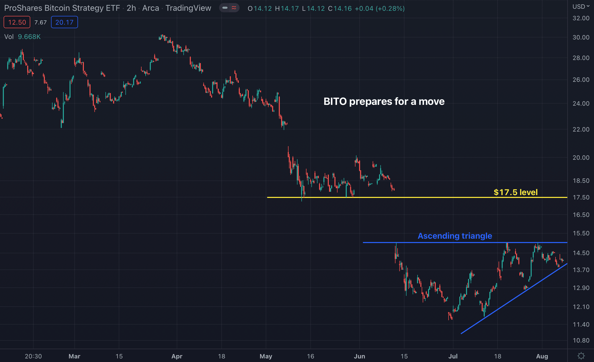 BITO is a fund that seeks capital appreciation. The fund seeks to provide capital appreciation primarily through managed exposure to bitcoin futures contracts. The fund does not invest directly in bitcoin and may also invest in other...
