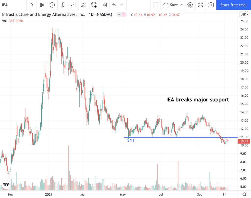 Infrastructure & Energy Alternatives, Inc. (IEA) is a holding company, which engages in the provision of infrastructure solutions for the renewable energy, traditional power, and civil infrastructure industries. It operates through Renewables...