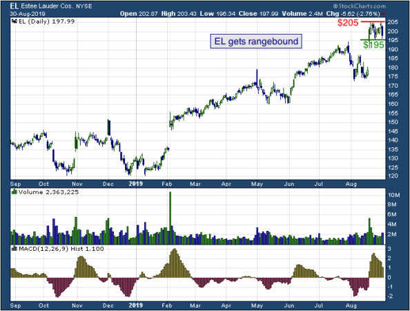 Take a look at the 1-year chart of Estee (NYSE: EL) below with added notations: