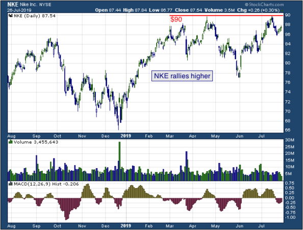 Take a look at the 1-year chart of Nike (NYSE: NKE) below with added...